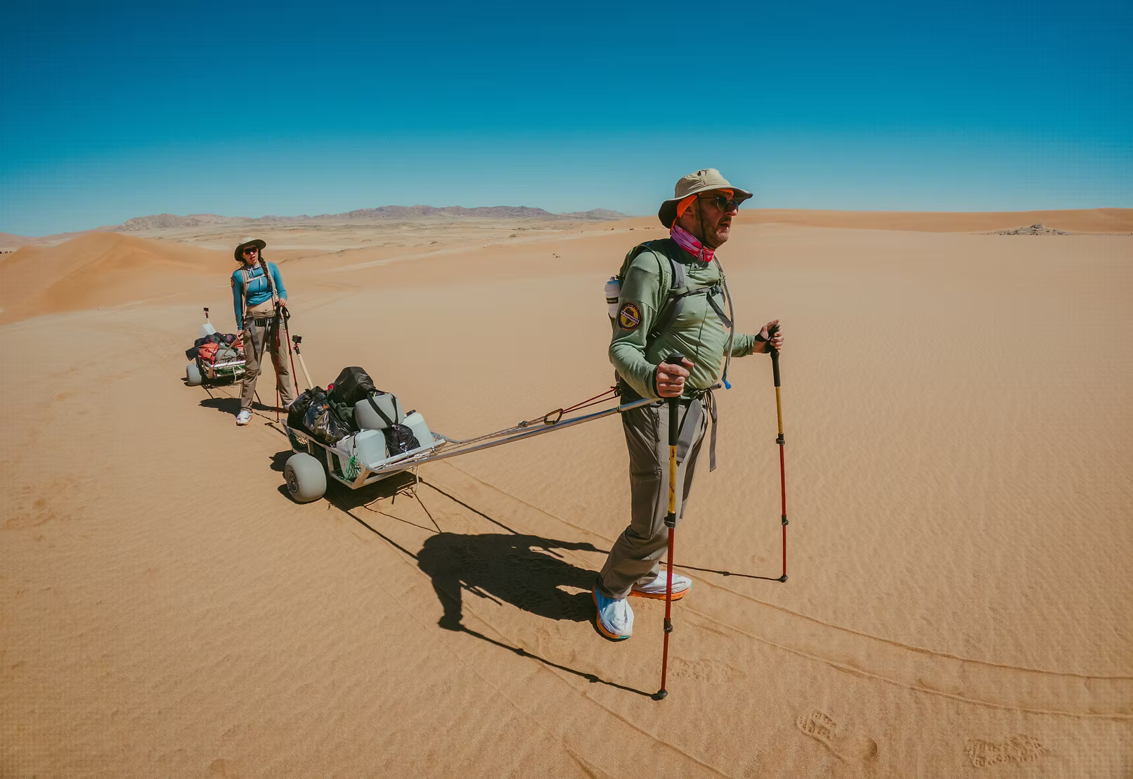 Ver van wegen, dorpen en alle vormen van de bewoonde wereld doorkruis je gebieden groter dan België, met eindeloze horizon en een op een tempo dat door de natuur bepaalt wordt. Van rood gekleurde duinen en droge rivierbeddingen tot ruige bergen en surrealistische valleien.